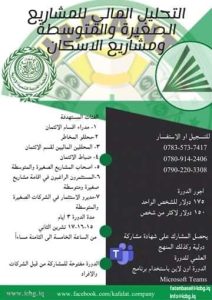 ومما تقدم يسعدنا ان نقدم الى حضراتكم دورة في( التحليل المالي للمشاريع الصغيرة والمتوسطة ومشاريع الاسكان)