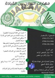 ومما تقدم يسعدنا ان نقدم الى حضراتكم ورشة في(مهارات التوازن بين الاداره والقيادة-دليل المتكامل للمديرين)