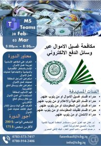 ومما تقدم يسعدنا ان نقدم الى حضراتكم ورشة في(مكافحة غسيل الاموال عبر وسائل الدفع الالكتروني)
