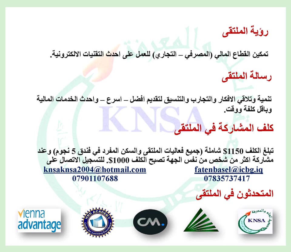 يسعدنا بالتعاون مع جمعية العلم والمعرفة ان نقدم الى حضراتكم الملتقى الاول لتطوير العمل المالي