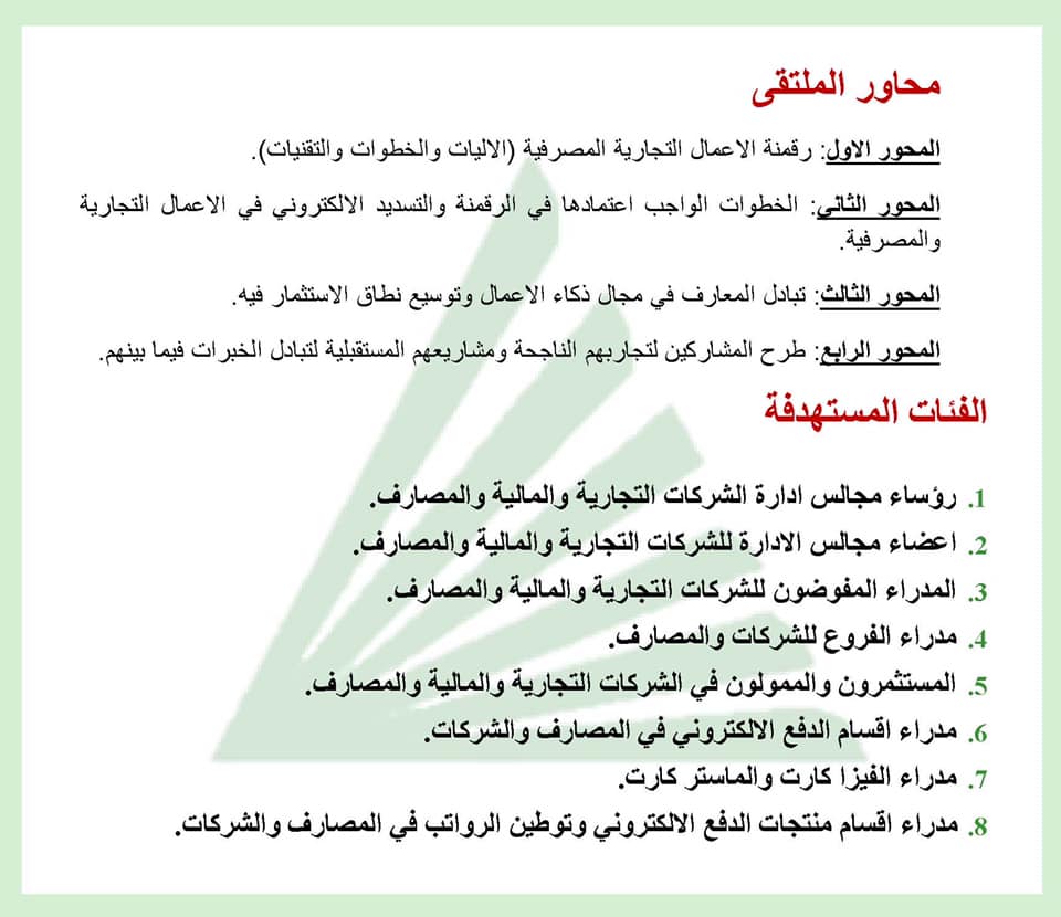 والمصرفي والتجاري تحت عنوان(رقمنة الاعمال المالية والمصرفية والتجارية)وبمشاركة ورعاية