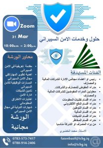 للامن السيبراني بالتنسيق مع شركة جدار الناري الوكيل الحصري في العراق والمعتمدة من الشركة الاردنية (الدائرة الخضراء ) و التي تمثل اكثر من منظمة عالمية في هذا المجال (الامن السيبراني )